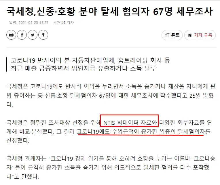 NTIS는 국세청에서 운영하는 전산시스템으로, 납세자가 제출한 각종 과세자료를 수집·분석하여 과세에 활용합니다.