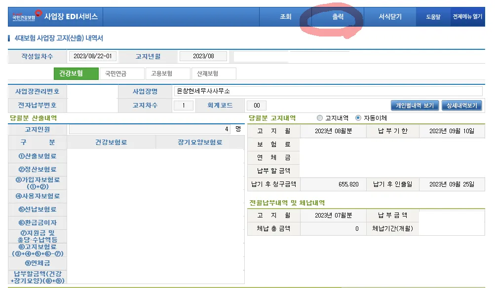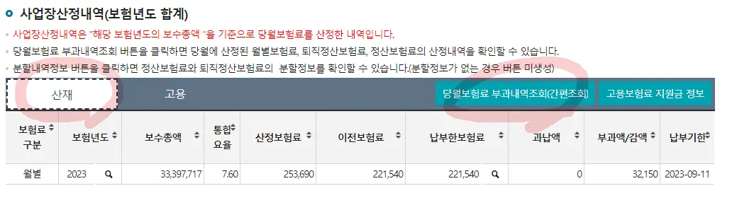 당월보험료 부과내역 클릭