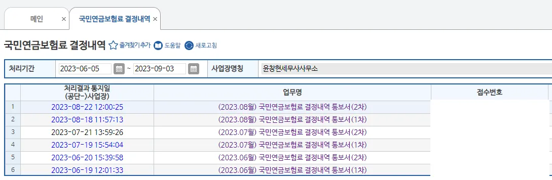 아래 목록에서 ‘국민연금봏머료 결정냉겨 통보서(2차)’ 클릭