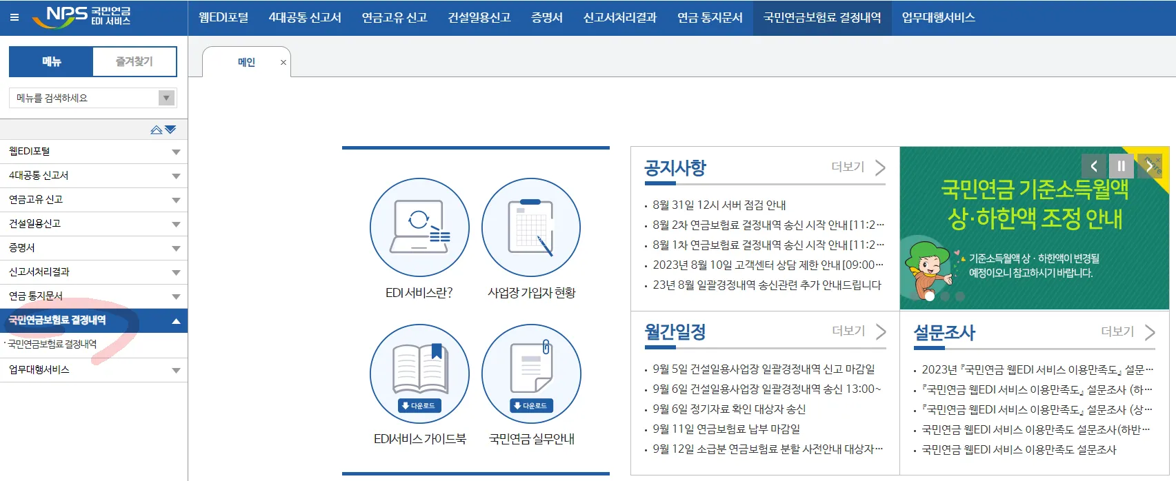 홈페이지 주소 : https://edi.nps.or.kr/