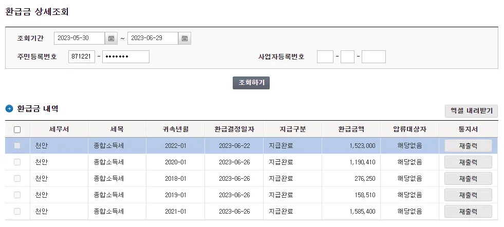 5개 년도 신고서상 내용 수정을 통한 종합소득세 환급